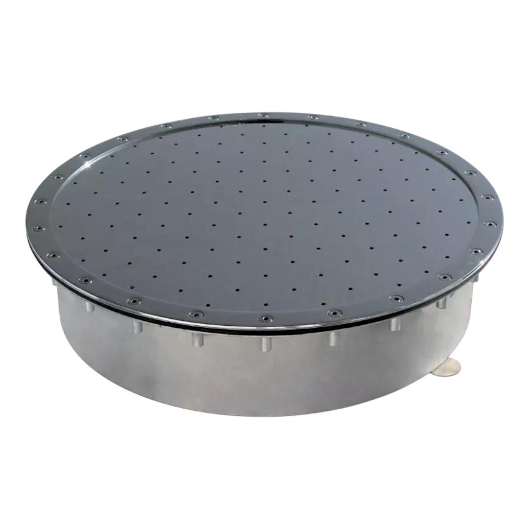 Гейзер круглый RunwillPools Р2-11 - представляет собой решетку, встроенную в дно искусственного водоема. Создает массажный эффект в бассейне с помощью мелких пузырьков воздуха. Изготовлен из зеркально отполированной нержавеющей стали, устойчивой к коррозии, воздействию ультрафиолета и химических реагентов. Подходит для установки в бассейнах, отделанных плёнкой.
