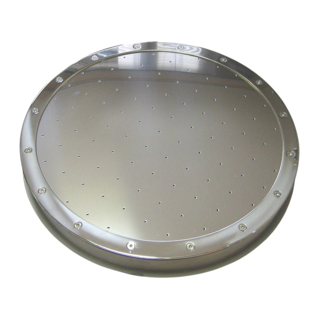 Плато круглое Акватехника АТ 02.23 - рассеивает нагнетаемый в воду бассейна воздух, в результате чего образуется множество пузырьков, создающих массажный эффект. Предназначено для установки в бассейнах, облицованных пленкой. Изготовлено из зеркально отполированной нержавеющей стали, устойчивой к коррозии, воздействию ультрафиолета и химических реагентов.