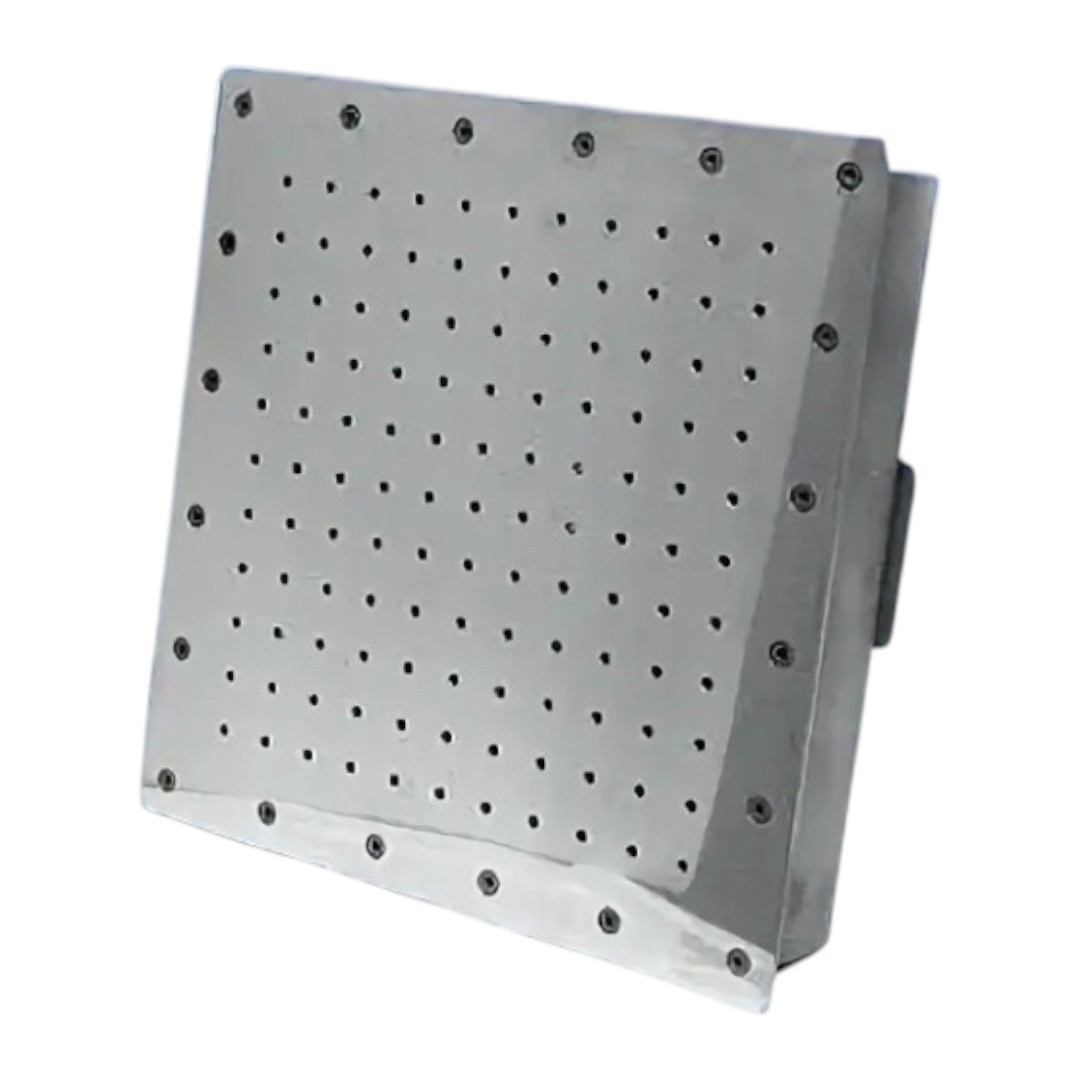 Плато квадратное Акватехника АТ 02.08М - рассеивает нагнетаемый в воду бассейна воздух, в результате чего образуется множество пузырьков, создающих массажный эффект. Предназначено для установки в бассейнах, облицованных пленкой. Изготовлено из зеркально отполированной нержавеющей стали, устойчивой к коррозии, воздействию ультрафиолета и химических реагентов.