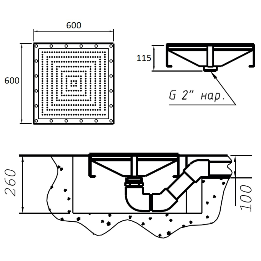 Плато 600х600, AISI-304, Акватехника АТ 02.11 (под плитку)
