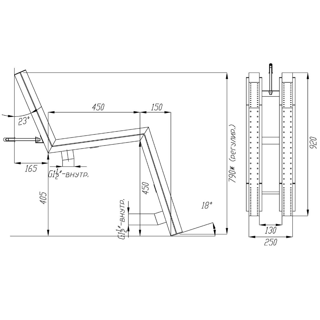 Аэромассажное кресло изготовлено из высококачественной нержавеющей стали. Имеет зеркальную полировку поверхностей лицевых частей. Угол наклона кресла можно отрегулировать с помощью стальных шпилек, которые поставляются вместе с изделием.