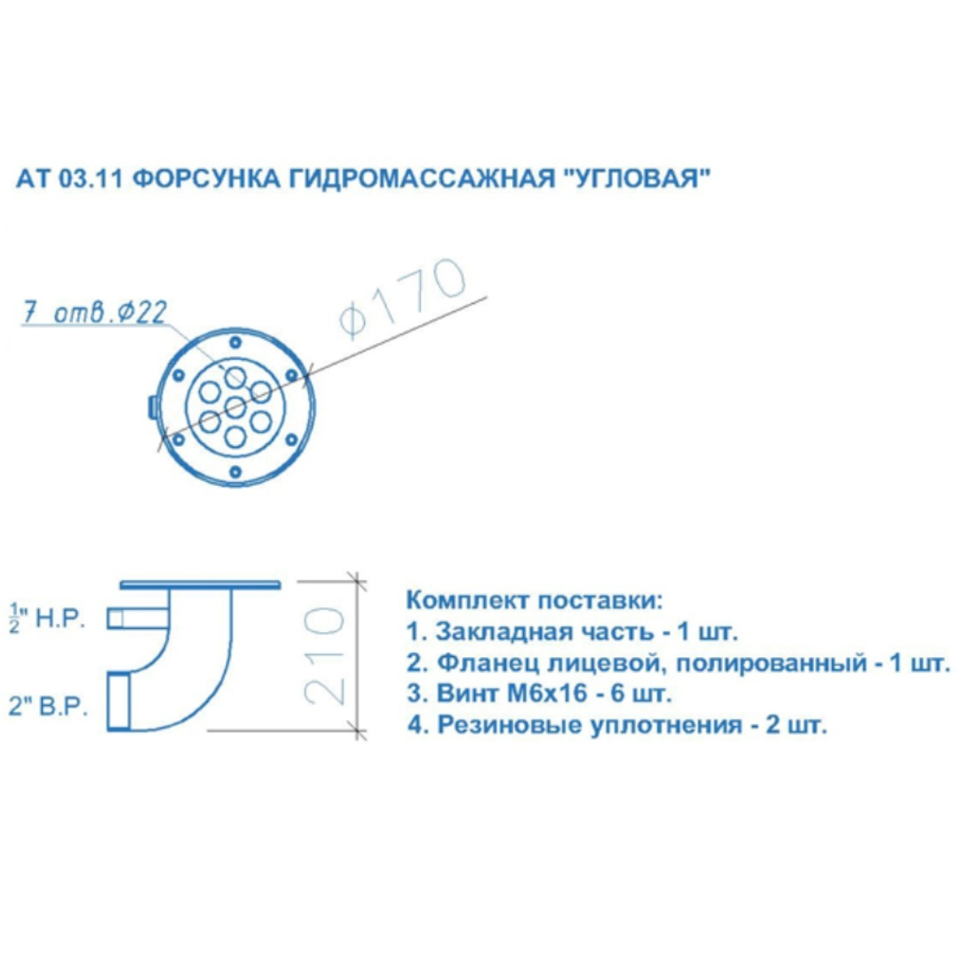 Форсунка Акватехника АТ 03.11 гидромассажная Угловая, 40м³/ч, AISI-304