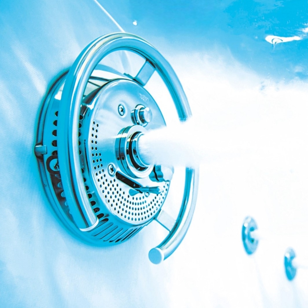 Лицевая панель изготовлена из нержавеющий стали, устойчивой к коррозии, воздействию ультрафиолета и химических реагентов. Насос изготовлен из бронзы. Устройство имеет встроенную регулировку напора воды и количества воздуха в струе. Включение осуществляется пьезокнопкой на лицевой панели.
