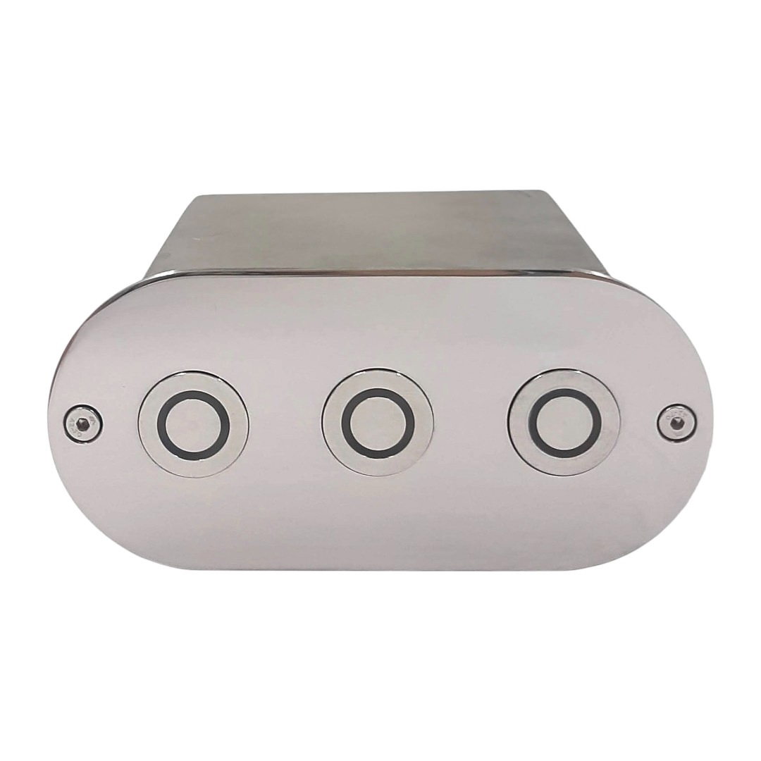 Герметично смонтированная при помощи адаптера сенсорная кнопка позволяет безопасно включать или выключать противотоки, гидромассажные форсунки, цепи подсветки, аэромассажные плато, водопады и другие водные аттракционы.