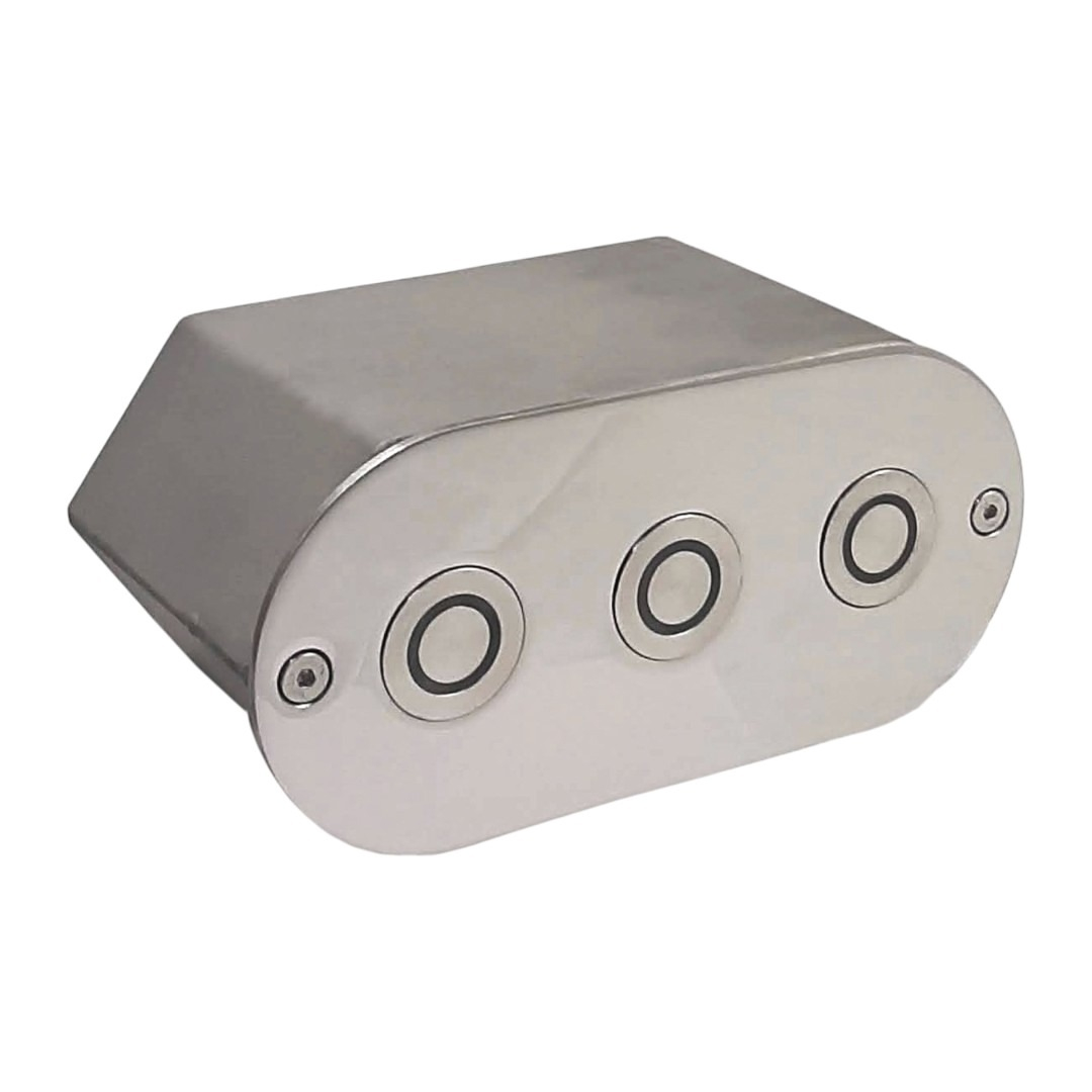 Герметично смонтированная при помощи адаптера сенсорная кнопка позволяет безопасно включать или выключать противотоки, гидромассажные форсунки, цепи подсветки, аэромассажные плато, водопады и другие водные аттракционы.