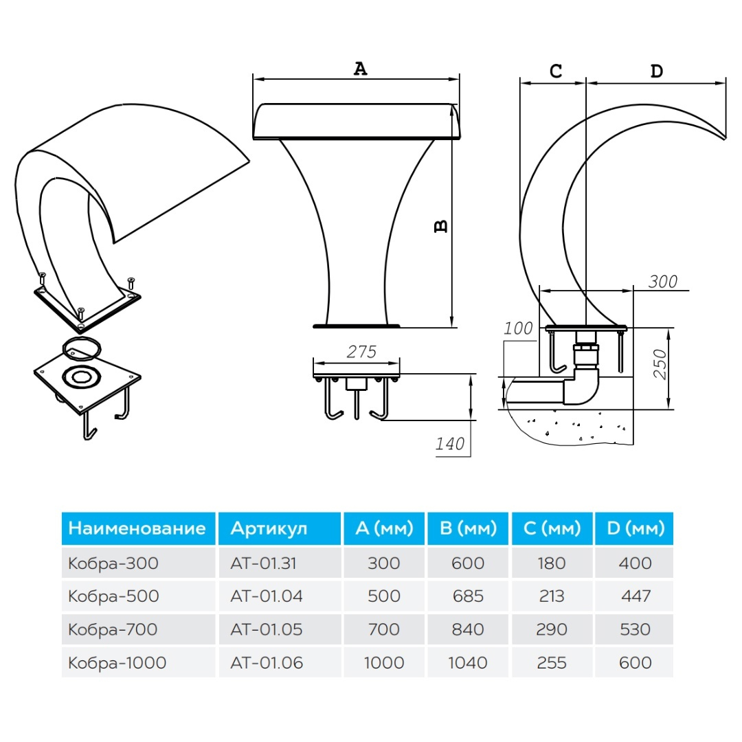 Водопад Кобра 1000 Акватехника АТ 01.06 - является декоративным элементом бассейнов и прочих искусственных водоёмов и аквасистем. Изливающийся поток воды оказывает массажирующее воздействие на плечи, шею, голову. Изготовлен из полированной нержавеющей стали, устойчивой к коррозии, воздействию ультрафиолета и химии.