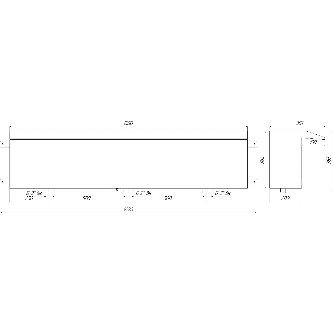Водопад стеновой 1500мм, AISI-316, RunwillPools Р1-16L