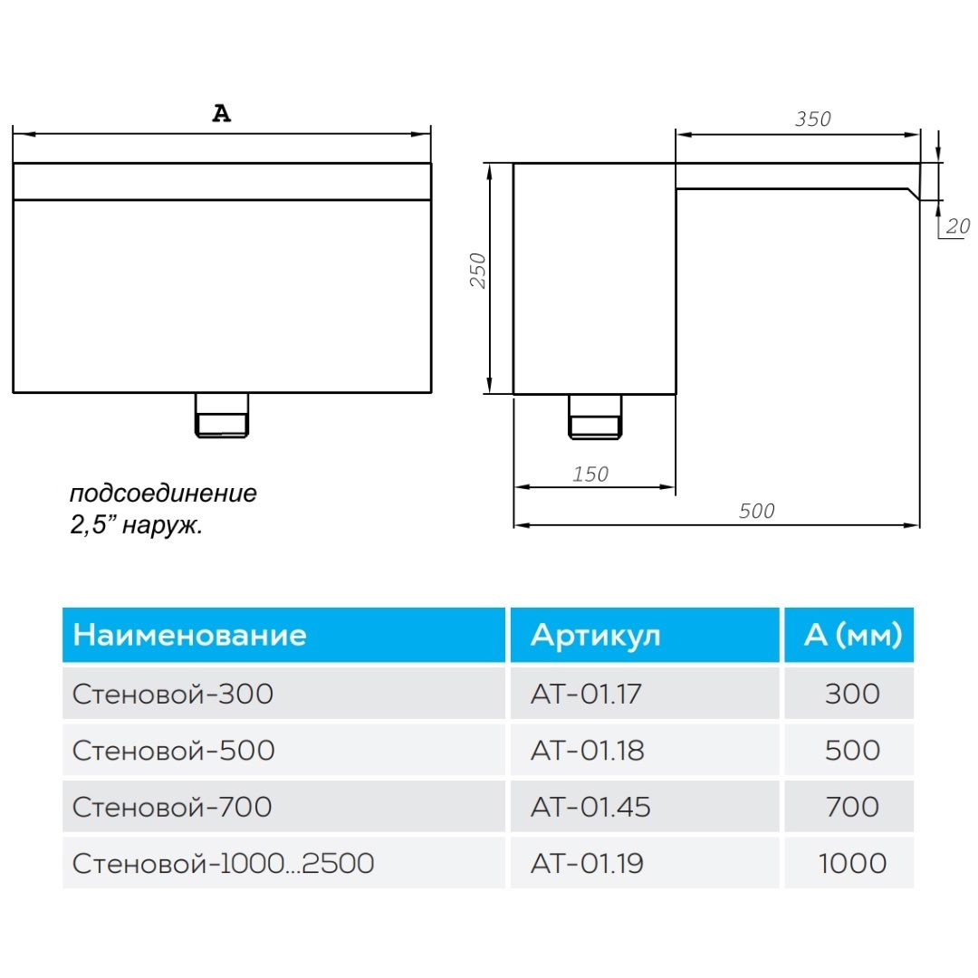 Водопад Стеновой 300, AISI-316, Акватехника АТ 01.17М
