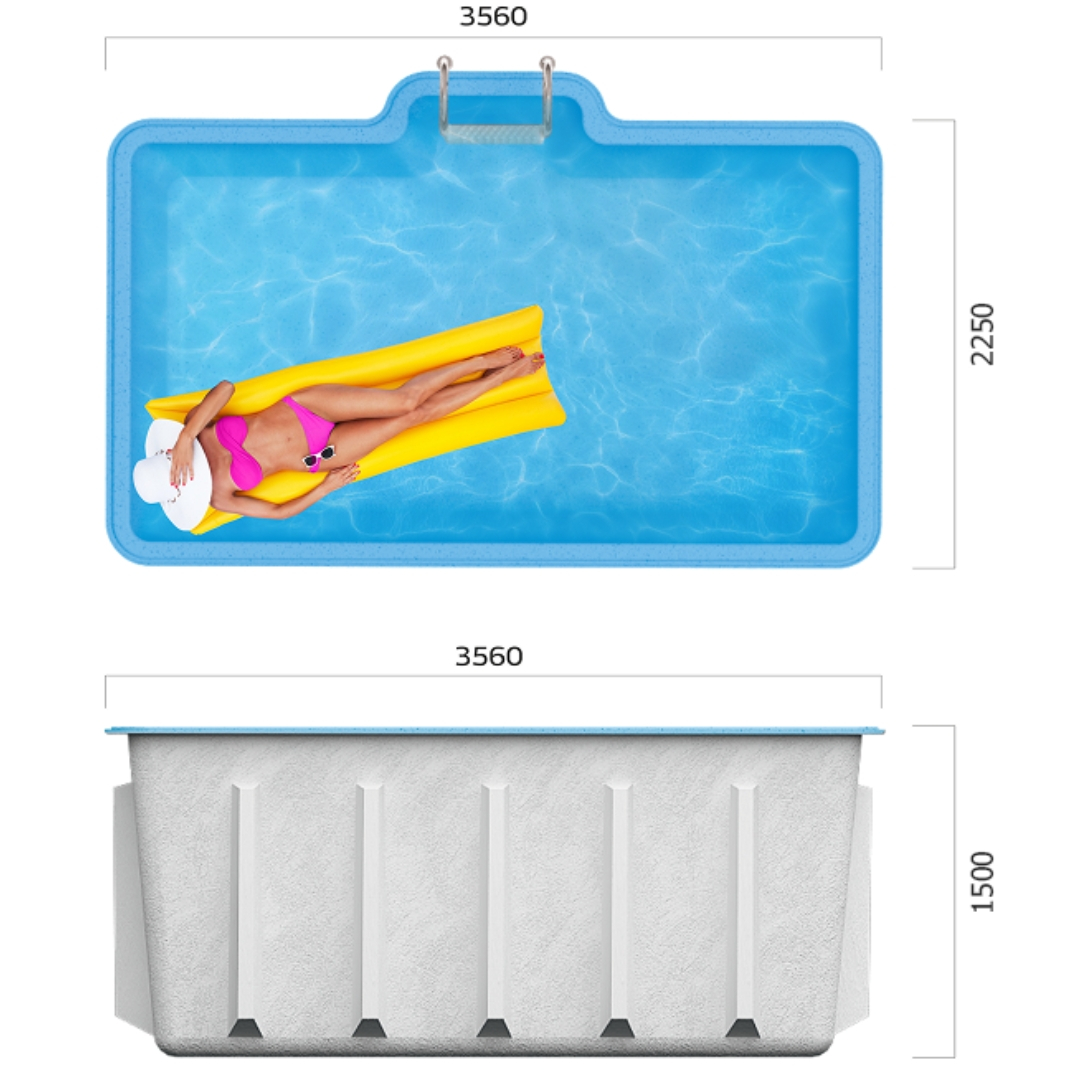 Композитный бассейн Абвиль - идеальное решение для тех, кто мечтает о собственном бассейне, но ограничен в пространстве. Благодаря компактным размерам эта модель легко разместится даже в небольшой сауне, зимнем саду или на компактной террасе. При этом в бассейне комфортно смогут отдыхать и плавать сразу несколько человек.