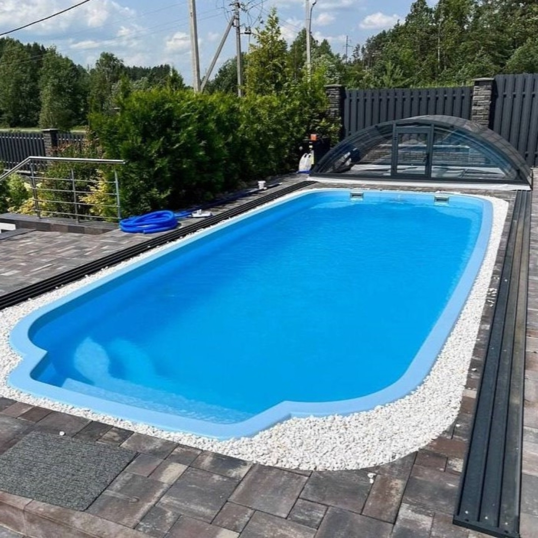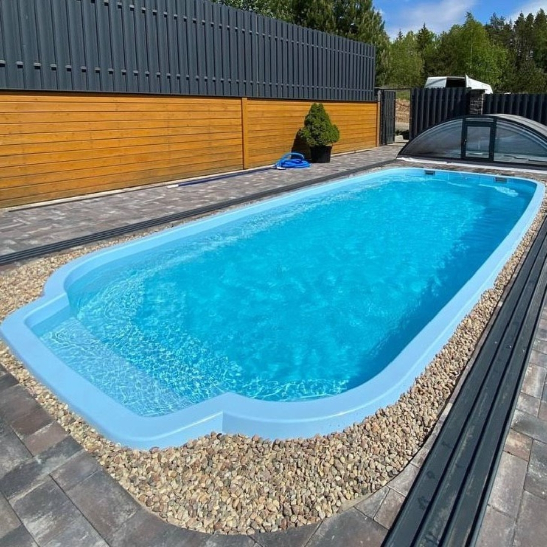 Чаша бассейна изготовлена из многослойного композитного материала, который не подвержен гниению, деформации от температурных перепадов, выгоранию на солнце. Гладкая поверхность без швов и острых углов не склонна к биозарастанию. Слои композитного бассейна включают: декоративное покрытие (гелькоут), химостойкий барьер, конструкционные слои, армирующий слой, ребра жесткости, финишный слой.