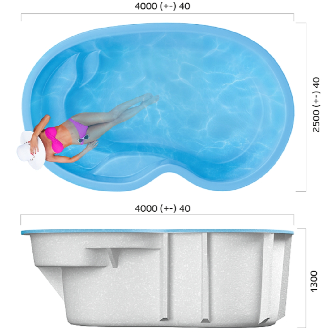 Бассейн состоит из: системы гелькоут, барьерных слоев стекловолокна и эпоксивинилэстеровых смол, усиления карбоном, конструкции из стекловолокна и полиэфирных смол, внешнего топкоута, утепления пенополиуретаном Термопул, защитной алюминиевой эмали и ребер жесткости Frostlock.