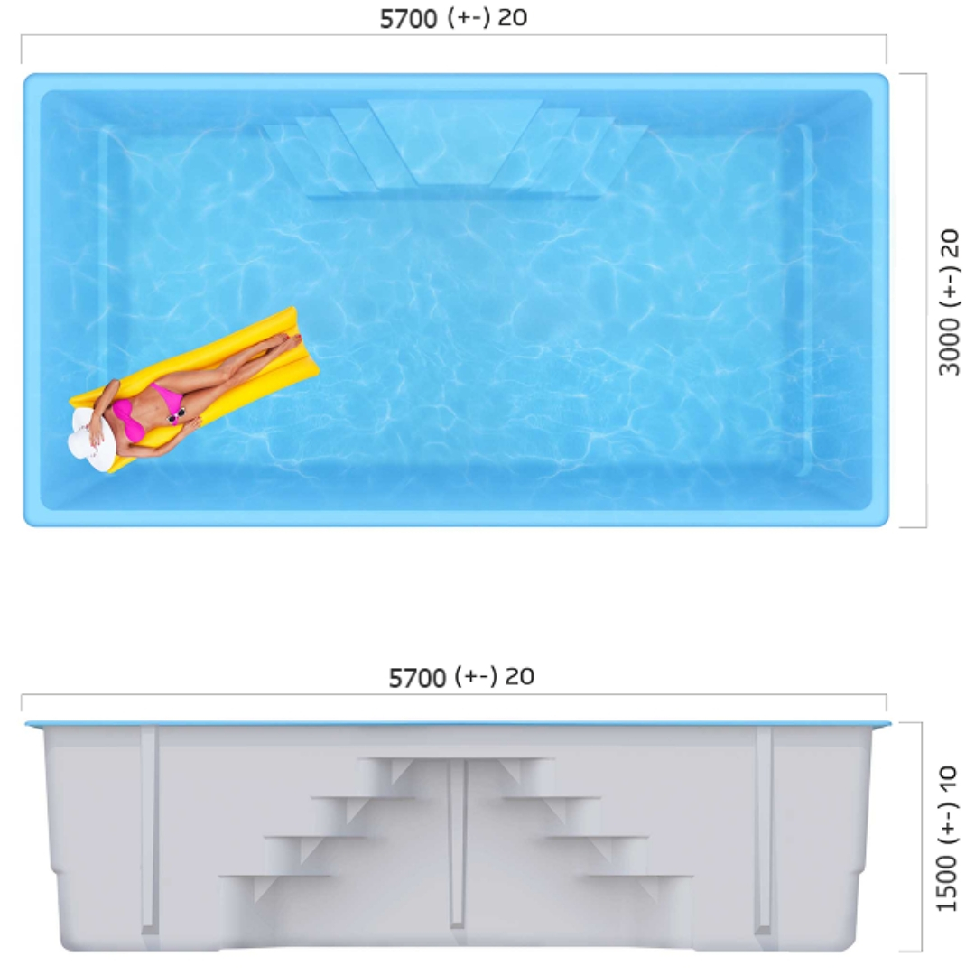 Композитный бассейн Бон - идеальное решение для тех, кто хочет создать комфортную зону отдыха даже на компактном участке. Благодаря нестандартному расположению спуска в воду пространство используется максимально эффективно, оставляя больше места для плавания и релакса.
