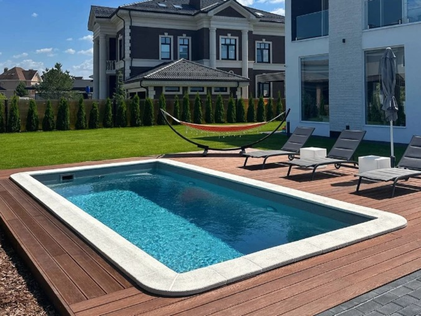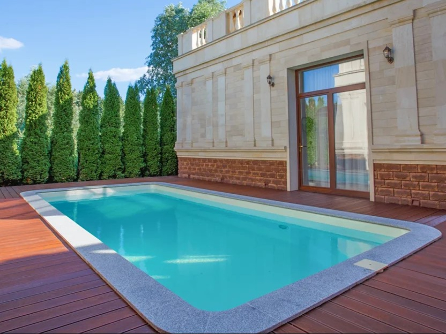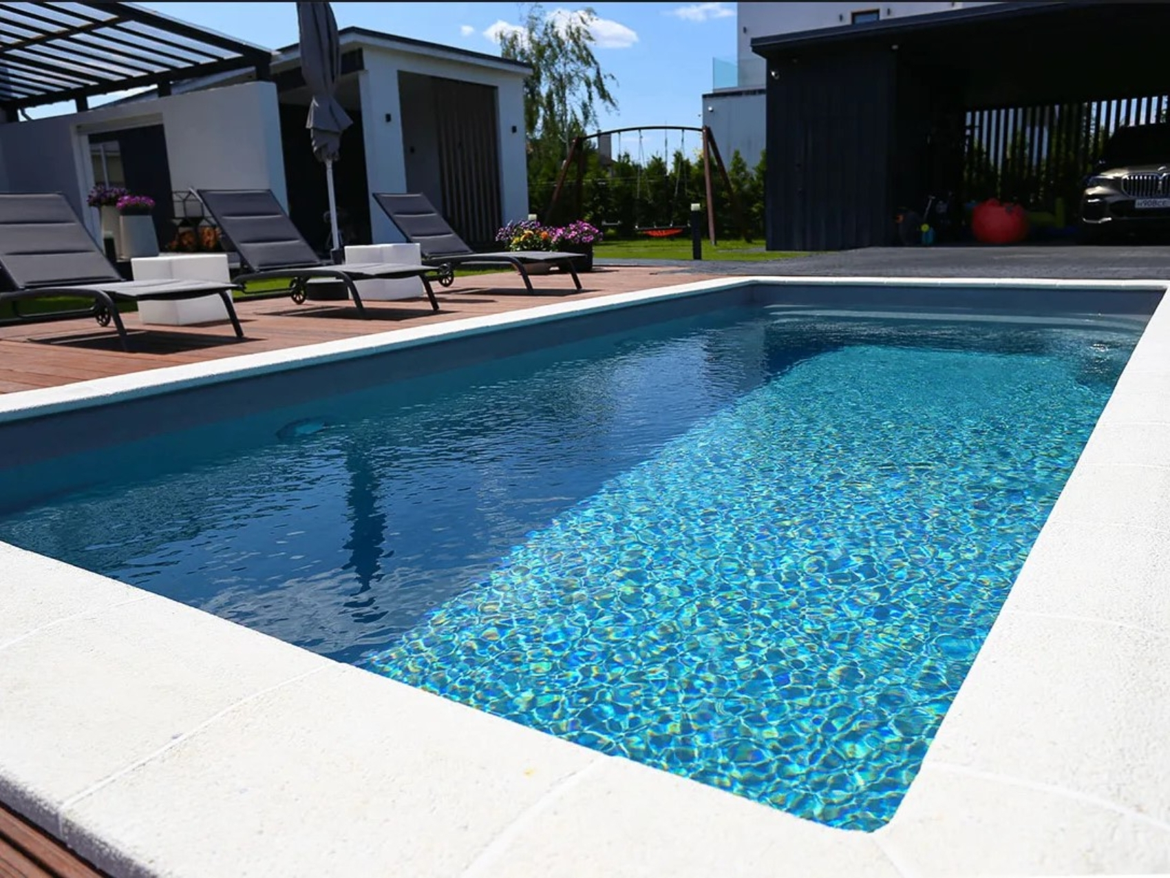 Встроенные опции: лестница, поручень безопасности, переходящая глубина, подводный диван и сиденье.