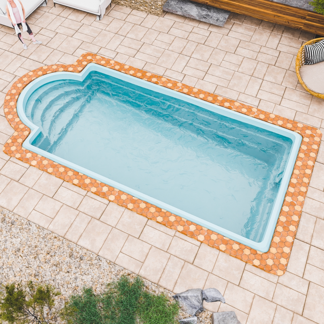 Чаша бассейна изготовлена из многослойного композитного материала, который не подвержен гниению, деформации от температурных перепадов, выгоранию на солнце. Гладкая поверхность без швов и острых углов не склонна к биозарастанию. Слои композитного бассейна включают: декоративное покрытие (гелькоут), химостойкий барьер, конструкционные слои, армирующий слой, ребра жесткости, финишный слой.