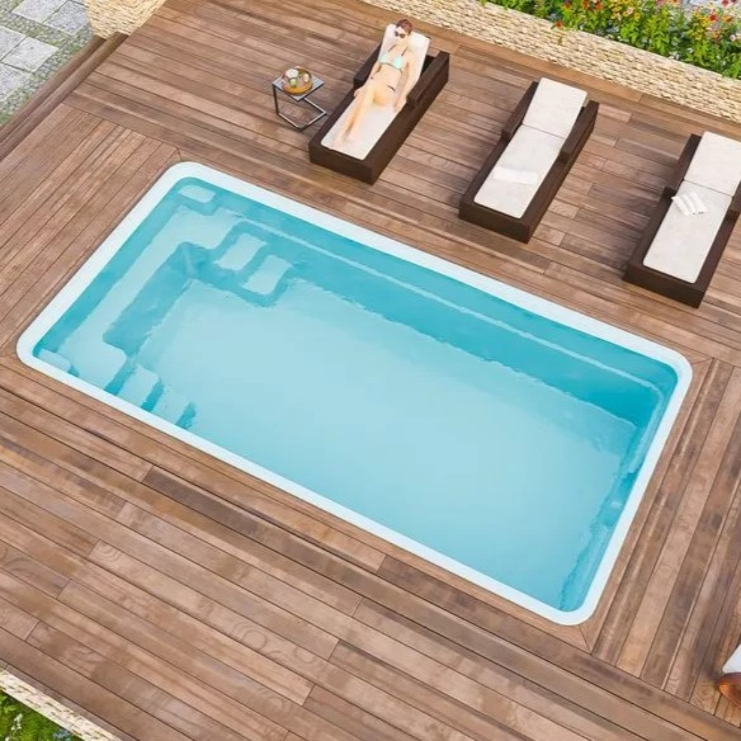 Композитный бассейн Эри 600 ECOLINE - средний бассейн с привлекательным классическим дизайном, который оптимально подойдет для небольшого участка. Чаша имеет классическую прямоугольную форму и постоянную глубину. Для входа в воду по углам предусмотрены неширокие ступеньки. Они минимально сокращают полезное пространство бассейна и могут использоваться в качестве мест для отдыха. Между собой лестницы соединены широким сиденьем - это потенциальная площадка для гидромассажа.