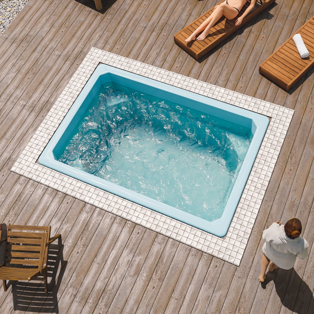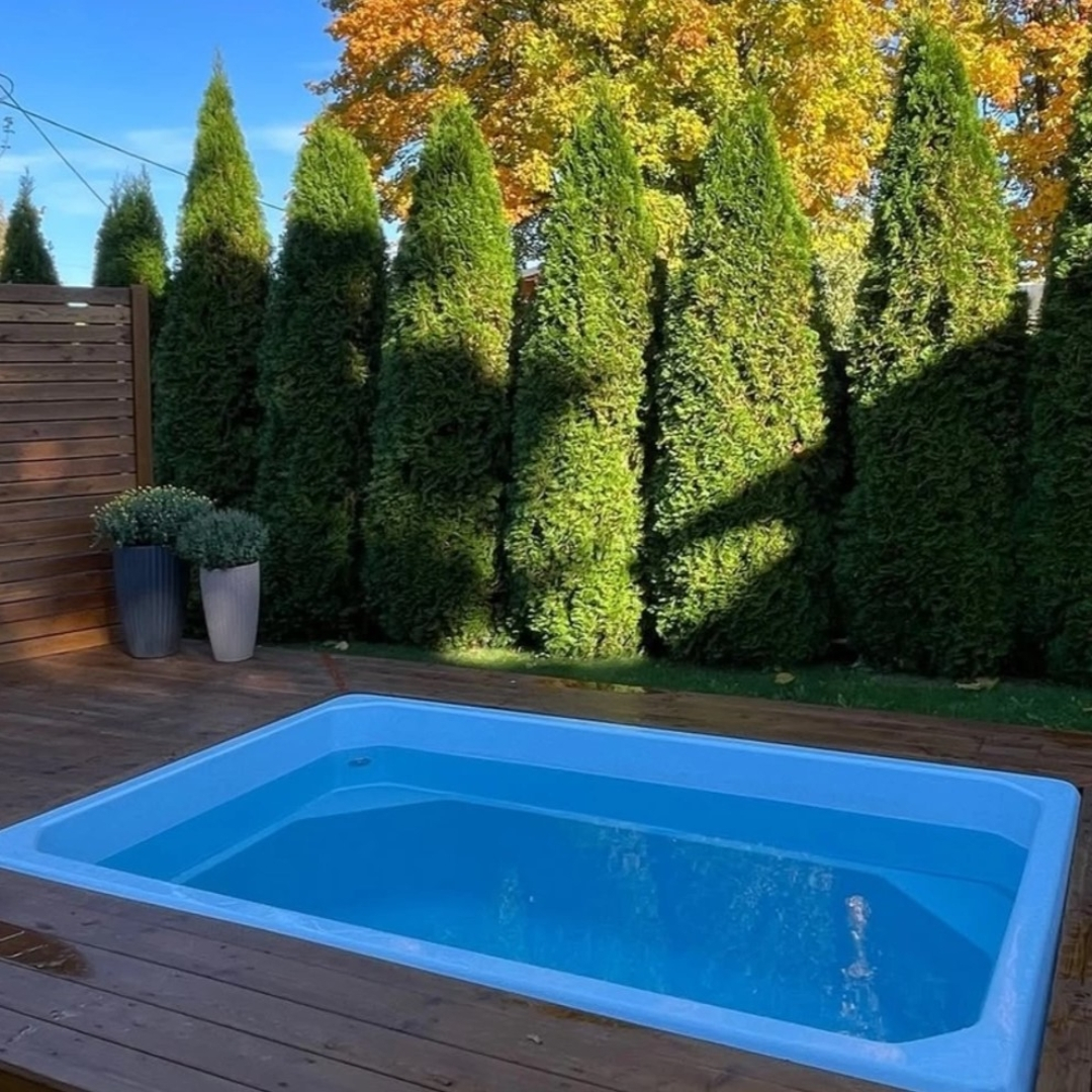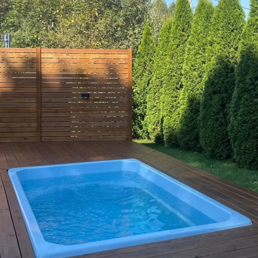 Композитный бассейн Комфорт PREMIUM - относится к категории малых и имеет постоянную глубину в 1,5 метра. Устанавливается в саунах, банях и спа-комплексах. По периметру в углах чаши предусмотрены сиденья, которые также используют для безопасного захода в водуу. Сиденья можно дополнить гидромассажем и превратить бассейн в джакузи.
