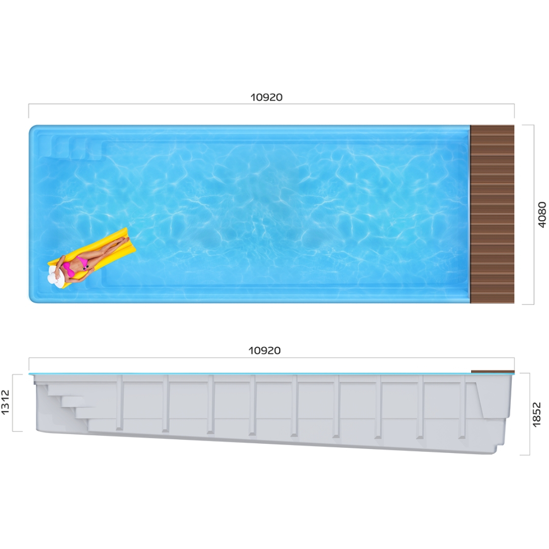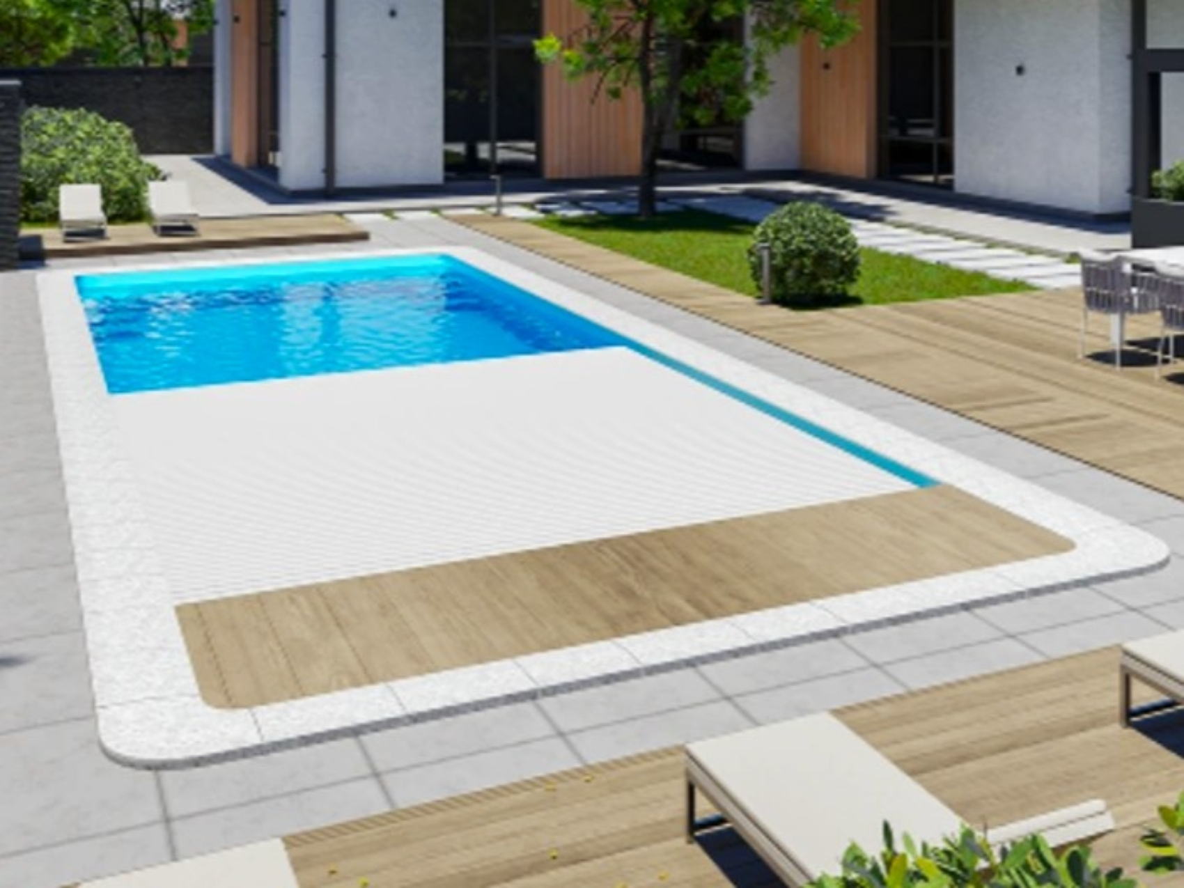 Композитный бассейн Ксабия + - просторный бассейн в классическом стиле, объединяющий внушительные размеры и умные технические решения. Встроенное сматывающее устройство и роллетное покрытие обеспечивают удобство и безопасность эксплуатации, обеспечивают надёжную защиту воды от загрязнений и испарений