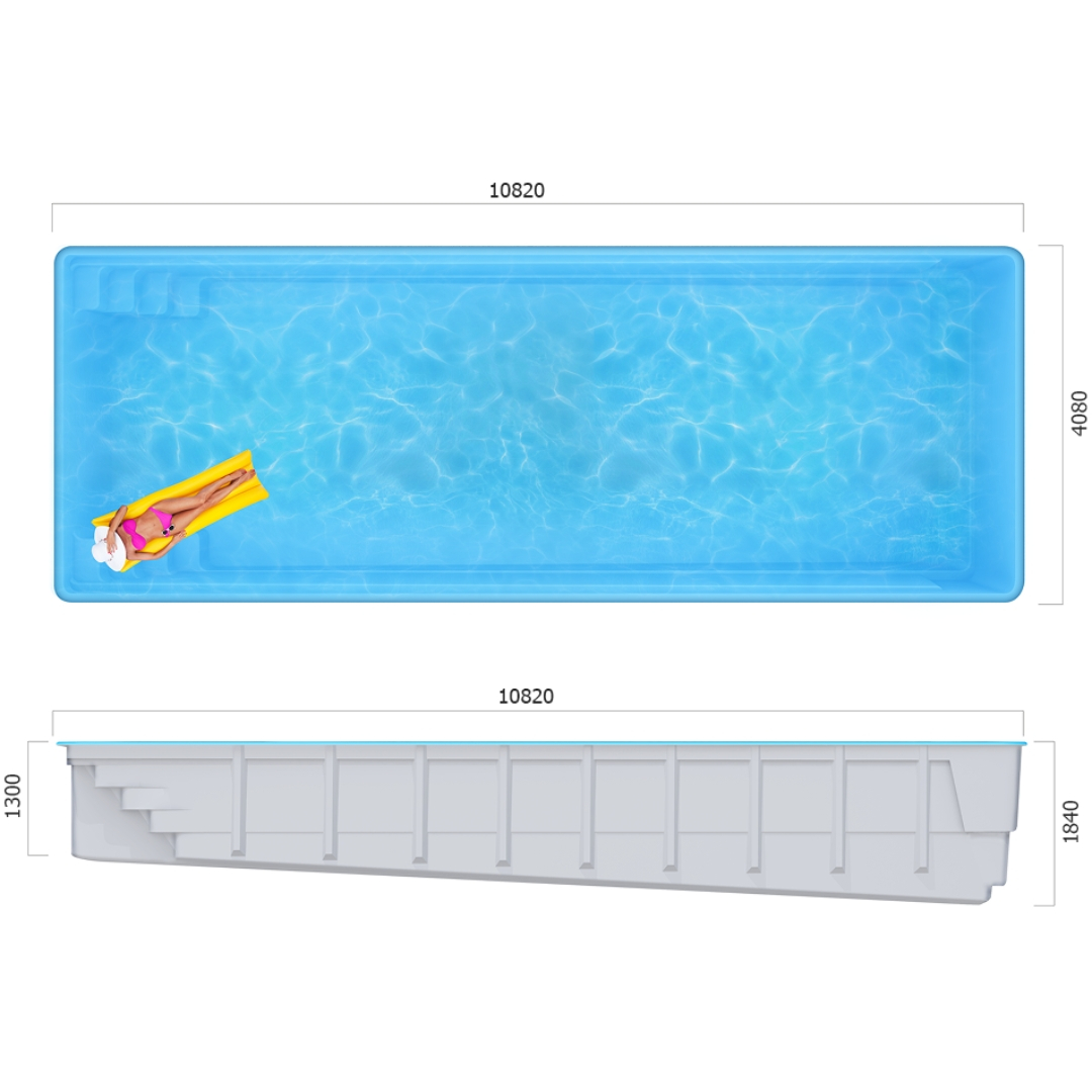 Встроенные опции: лестница, поручень безопасности, переходящая глубина.