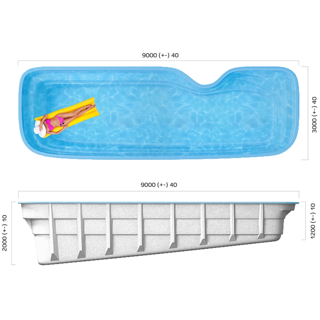 Встроенные опции: лестница, поручень безопасности, переходящая глубина, подводный диван и сиденье.