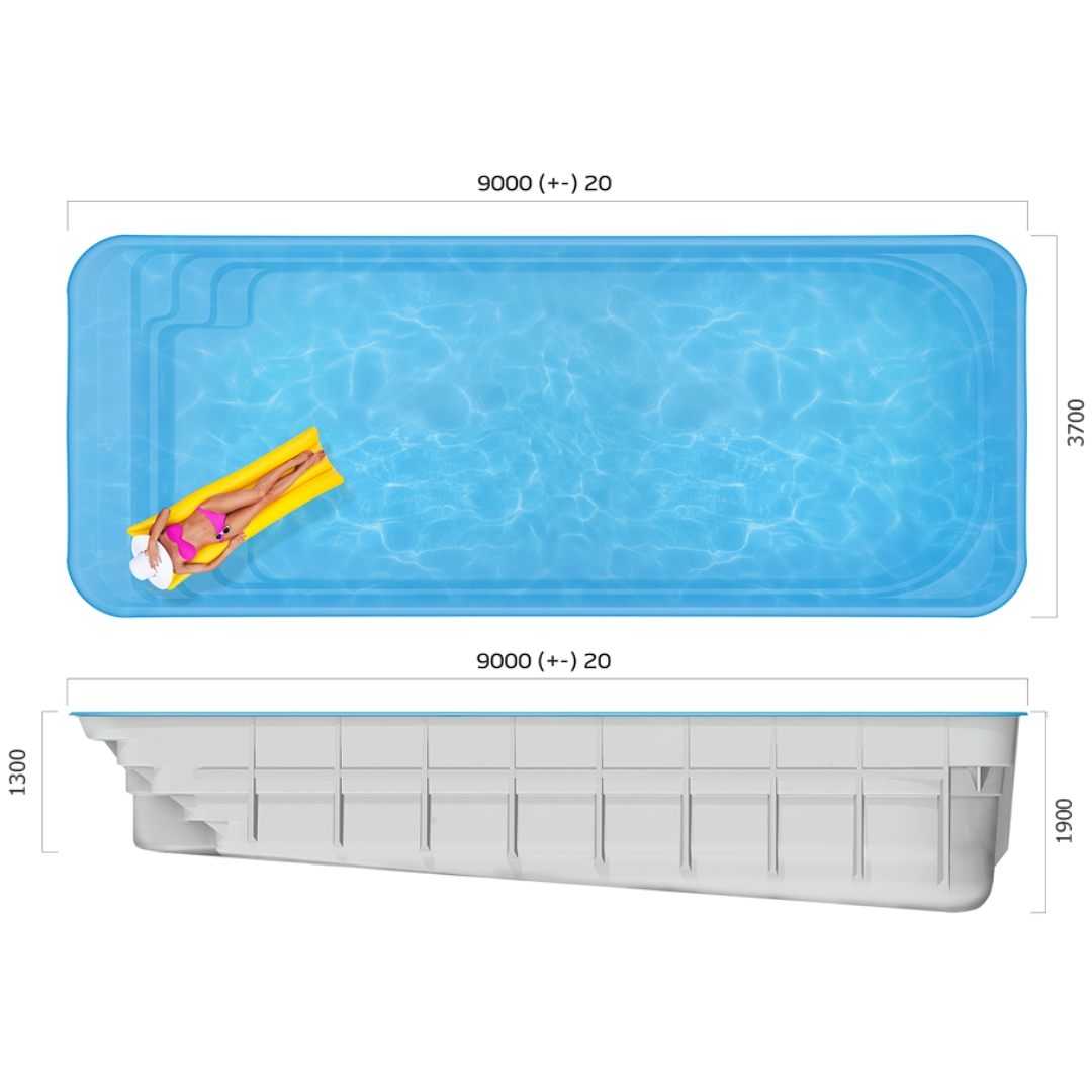 Встроенные опции: лестница, поручень безопасности, переходящая глубина, подводный диван и сиденье.