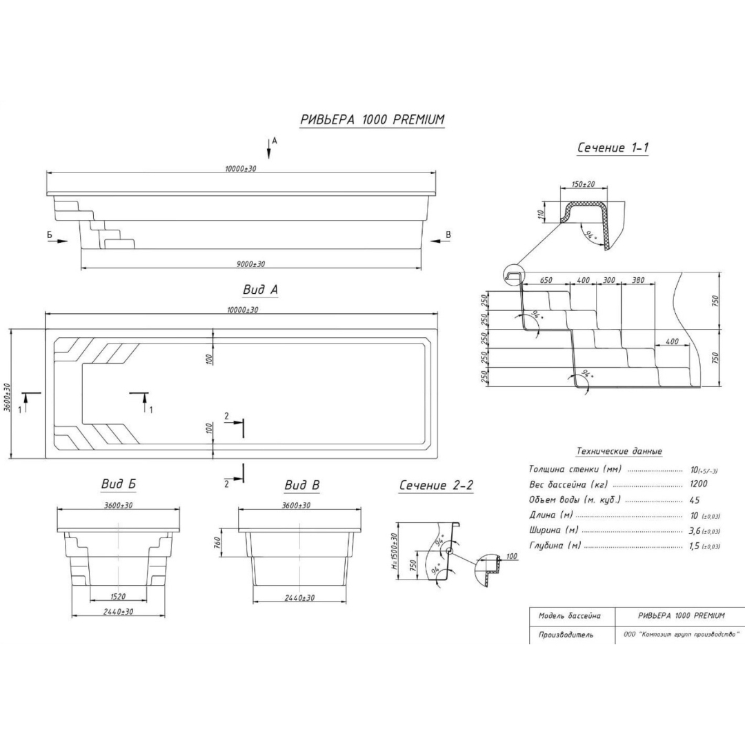Композитный бассейн Ривьера 1000 ECOLINE