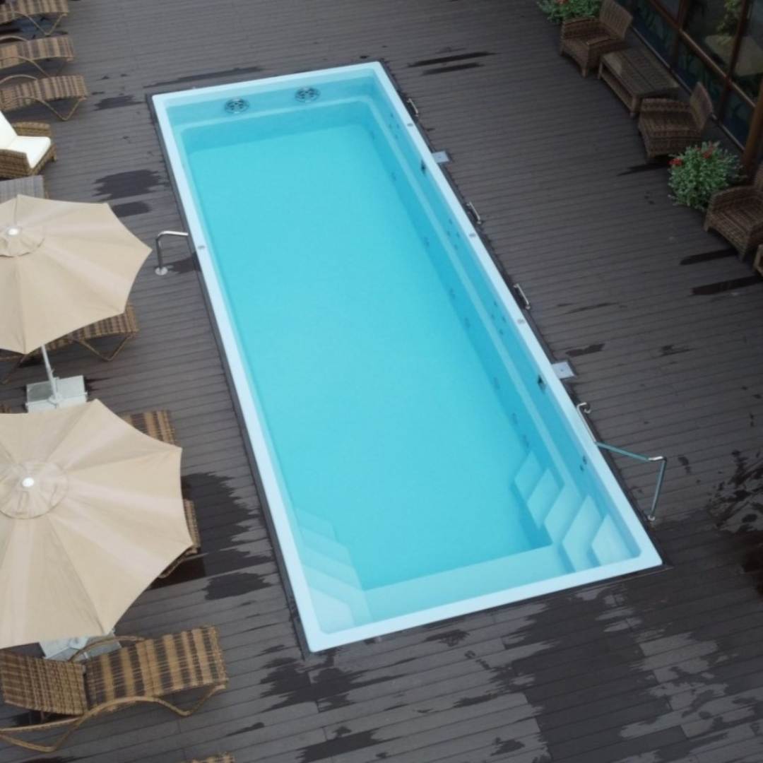 Композитный бассейн Ривьера 1000 PREMIUM - классический плавательный бассейн со строгим сдержанным стилем и максимальной полезной площадью. Большая прямоугольная чаша с постоянной глубиной лишена изгибов и выступов, способных сокращать полезное пространство. Удобные ступеньки с двух сторон и комфортное сиденье для отдыха можно дополнить гидромассажем.