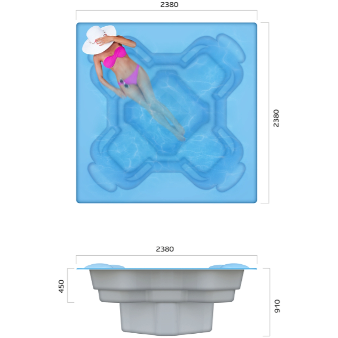 Встроенные опции: лестница, подводное сиденье, подлокотники.