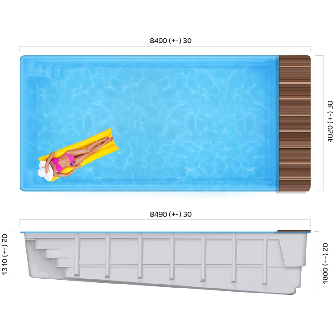 Композитный бассейн Савой + - это четкие геометрические формы для эстетики и встроенный короб для ролетного покрытия. Усовершенствованная функциональность - так характеризуют «Савой +» пользователи. Лаконичность - это не отсутствие дизайна, а его совершенство. Идеально вписывается в классический и неоклассический архитектурный стиль.