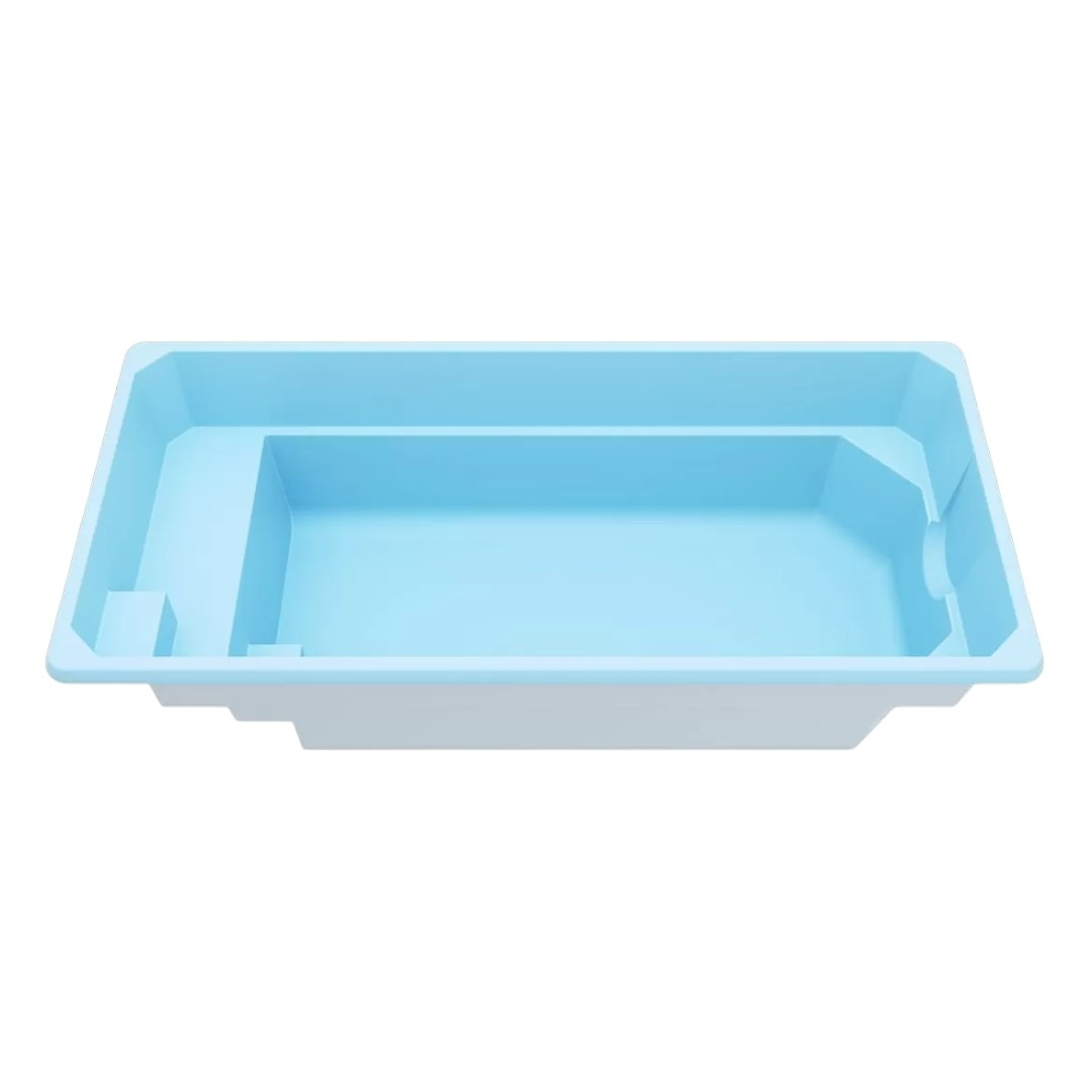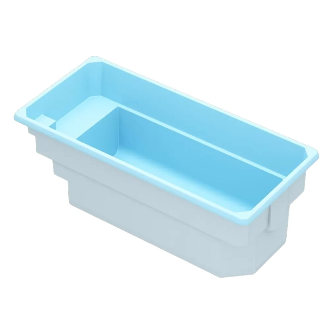 Композитный бассейн Сити 500 ECOLINE - компактный бассейн с прямоугольной чашей, который легко впишется в любой городской двор, узкую террасу или банный комплекс. Предоставляет максимум свободного пространства для плавания и отдыха на узком участке. Спуск продуман максимально удобно: одна широкая ступень-подиум и две компактные позволяют безопасно заходить в воду. При этом вся остальная длина чаши остается свободной для плавания. При желании можно добавить противоток, гидромассаж и подсветку.