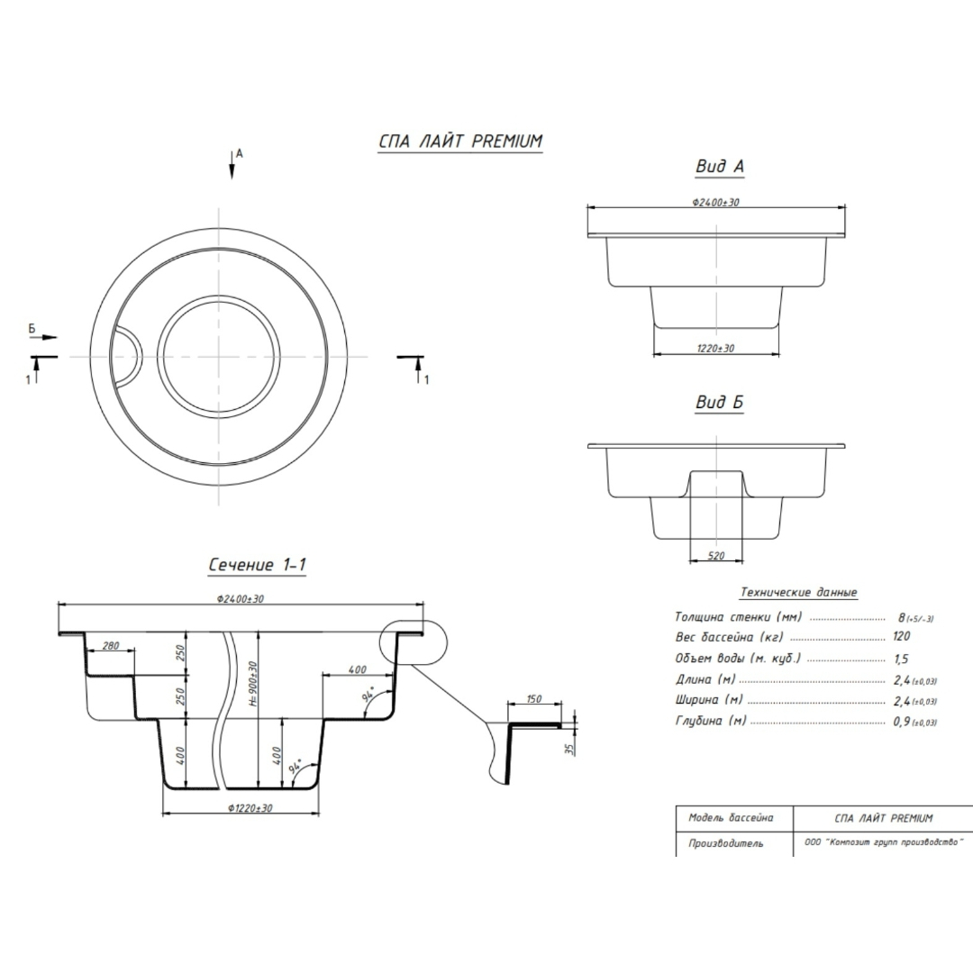 | Глубина, м | 0,9 |