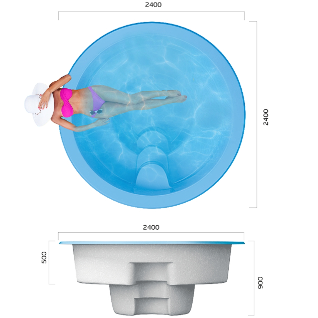 Бассейн состоит из: системы гелькоут, барьерных слоев стекловолокна и эпоксивинилэстеровых смол, усиления карбоном, конструкции из стекловолокна и полиэфирных смол, внешнего топкоута, утепления пенополиуретаном Термопул, защитной алюминиевой эмали и ребер жесткости Frostlock.