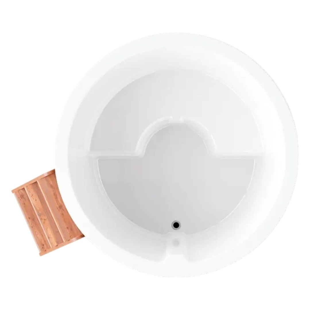 Чаша купели изготовлена из многослойного композита с использованием декоративно-защитного высокопрочного материала гелькоут. Гелькоут абсолютно безопасен для человека и позволяет добиться глянцевого эффекта. Покрытие купели гладкое, приятное на ощупь, ослепительно белого цвета.