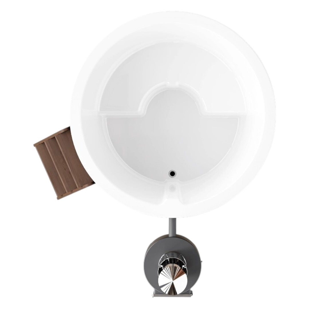 Чаша купели изготовлена из многослойного композита с использованием декоративно-защитного высокопрочного материала гелькоут. Гелькоут абсолютно безопасен для человека и позволяет добиться глянцевого эффекта. Покрытие купели гладкое, приятное на ощупь, ослепительно белого цвета.