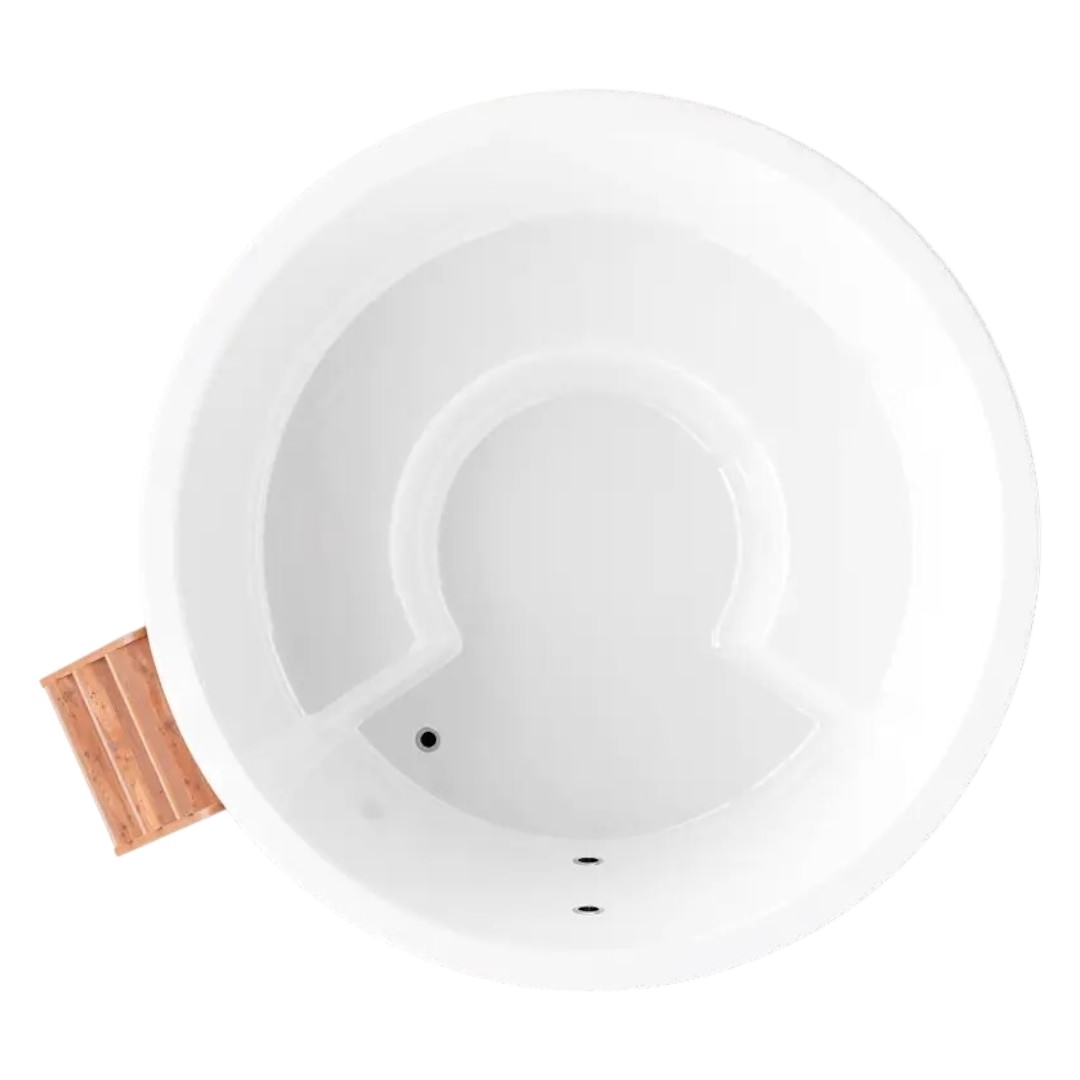 Чаша купели изготовлена из многослойного композита с использованием декоративно-защитного высокопрочного материала гелькоут. Гелькоут абсолютно безопасен для человека и позволяет добиться глянцевого эффекта. Покрытие купели гладкое, приятное на ощупь, ослепительно белого цвета.