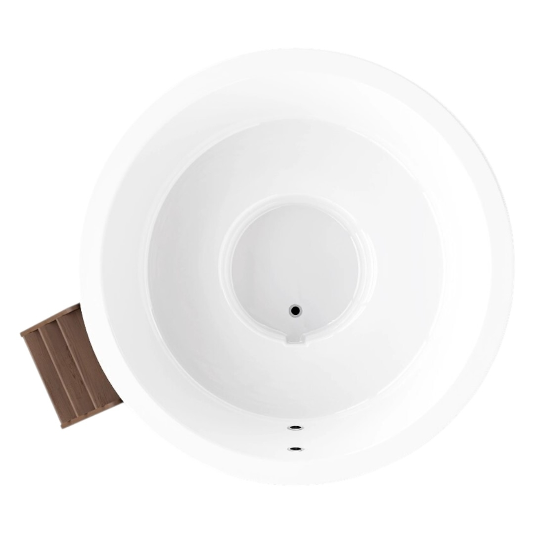 Чаша купели изготовлена из многослойного композита с использованием декоративно-защитного высокопрочного материала гелькоут. Гелькоут абсолютно безопасен для человека и позволяет добиться глянцевого эффекта. Покрытие купели гладкое, приятное на ощупь, ослепительно белого цвета.