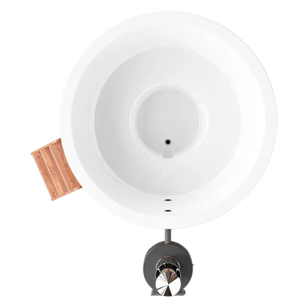 Чаша купели изготовлена из многослойного композита с использованием декоративно-защитного высокопрочного материала гелькоут. Гелькоут абсолютно безопасен для человека и позволяет добиться глянцевого эффекта. Покрытие купели гладкое, приятное на ощупь, ослепительно белого цвета.