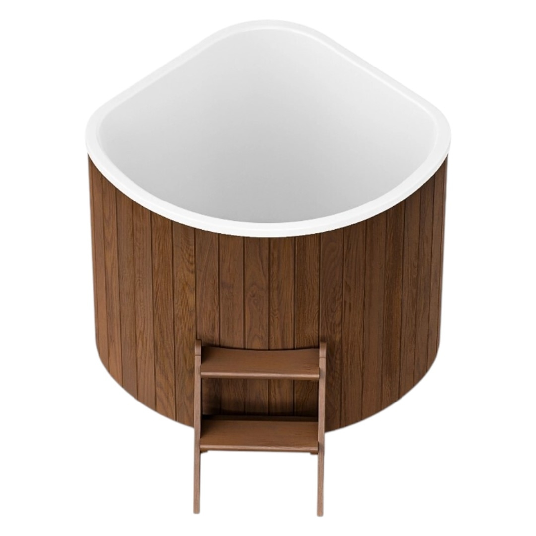 Чаша купели изготовлена из многослойного композита с использованием декоративно-защитного высокопрочного материала гелькоут. Гелькоут абсолютно безопасен для человека и позволяет добиться глянцевого эффекта. Покрытие купели гладкое, приятное на ощупь, ослепительно белого цвета.