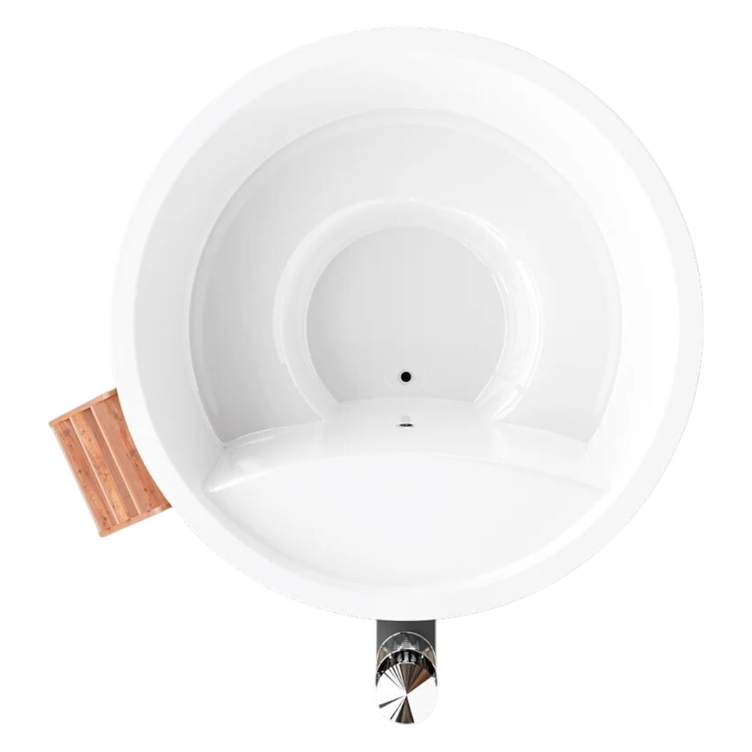 Чаша купели изготовлена из многослойного композита с использованием декоративно-защитного высокопрочного материала гелькоут. Гелькоут абсолютно безопасен для человека и позволяет добиться глянцевого эффекта. Покрытие купели гладкое, приятное на ощупь, ослепительно белого цвета.