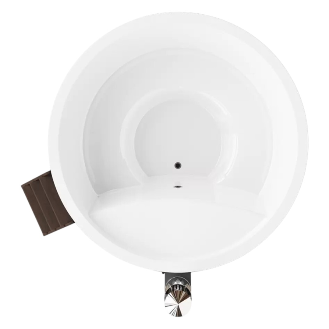 Чаша купели изготовлена из многослойного композита с использованием декоративно-защитного высокопрочного материала гелькоут. Гелькоут абсолютно безопасен для человека и позволяет добиться глянцевого эффекта. Покрытие купели гладкое, приятное на ощупь, ослепительно белого цвета.