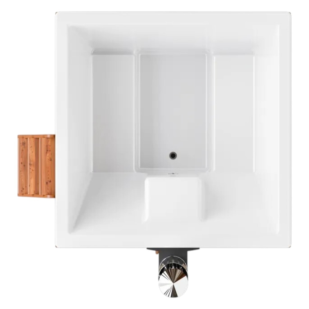 Чаша купели изготовлена из многослойного композита с использованием декоративно-защитного высокопрочного материала гелькоут. Гелькоут абсолютно безопасен для человека и позволяет добиться глянцевого эффекта. Покрытие купели гладкое, приятное на ощупь, ослепительно белого цвета.
