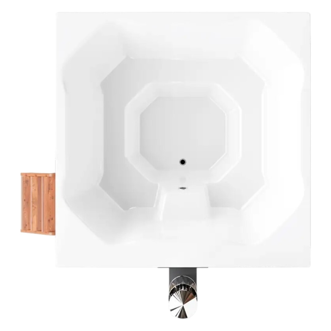 Чаша купели изготовлена из многослойного композита с использованием декоративно-защитного высокопрочного материала гелькоут. Гелькоут абсолютно безопасен для человека и позволяет добиться глянцевого эффекта. Покрытие купели гладкое, приятное на ощупь, ослепительно белого цвета.