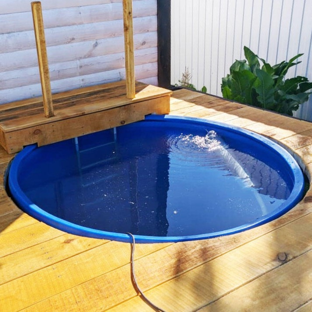 Бассейн изготовлен из высококачественного полиэтилена методом ротационного формования. В конструкции предусмотрены ребра жесткости для противодействия деформациям.