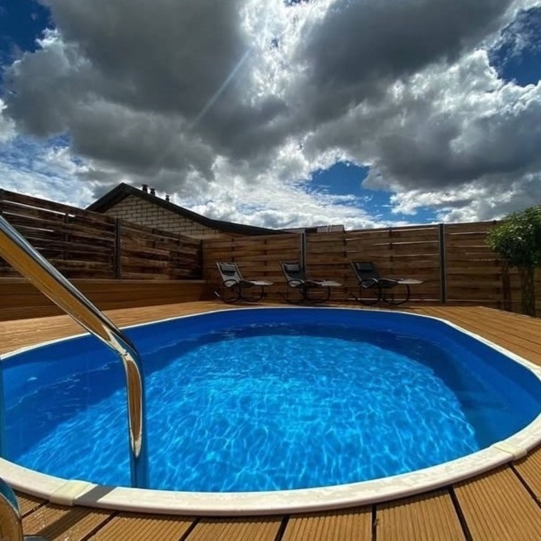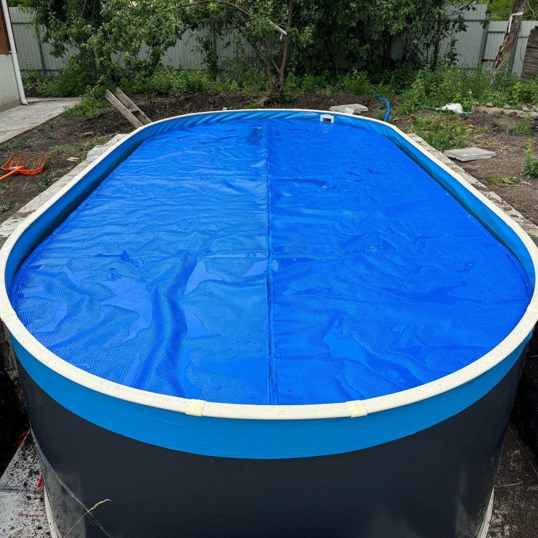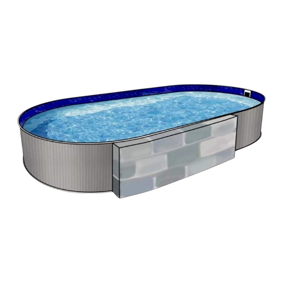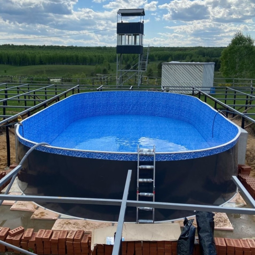 Бассейн выполнен из ламинированной листовой стали армированной поперечным профилем и чашкового ПВХ пакета. Многослойный полимерный ламинат позволяет продлить срок эксплуатации бассейна до 20-25 лет при периодической (раз 7-10 лет) замене чашкового пакета. Замена чашкового пакета производится без демонтажа бассейна.