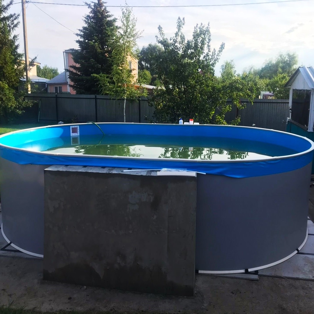Бассейн выполнен из ламинированной листовой стали армированной поперечным профилем и чашкового ПВХ пакета. Многослойный полимерный ламинат позволяет продлить срок эксплуатации бассейна до 20-25 лет при периодической (раз 7-10 лет) замене чашкового пакета. Замена чашкового пакета производится без демонтажа бассейна.