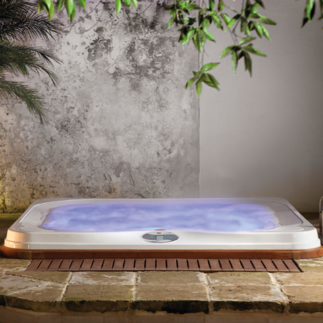 Бассейн оснащен эксклюзивной системой очистки воды, регулируемыми форсунками, аэромассажными форсунками и водопадом для полного гидромассажа с прогрессивной интенсивностью, который позволяет проходить настоящую процедуру оздоровления. Многоцветная светодиодная подсветка спроектирована для создания соответствующей атмосферы.