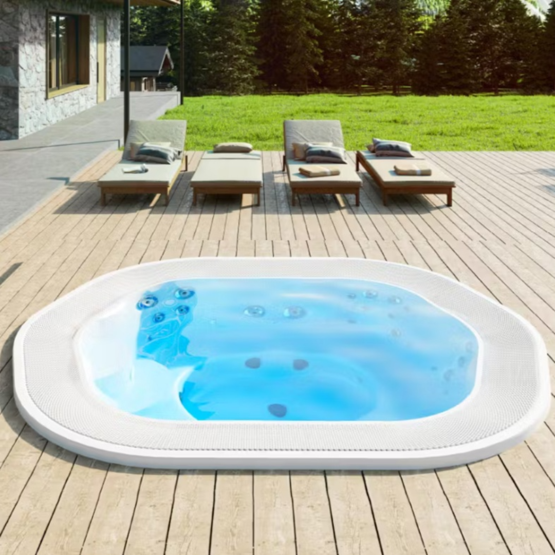 Бассейн оснащен технологией быстрого слива, эксклюзивной системой очистки воды, регулируемыми форсунками, аэромассажными форсунками и водопадом для полного гидромассажа с прогрессивной интенсивностью, который позволяет проходить настоящую процедуру оздоровления. Многоцветная светодиодная подсветка спроектирована для создания соответствующей атмосферы.
