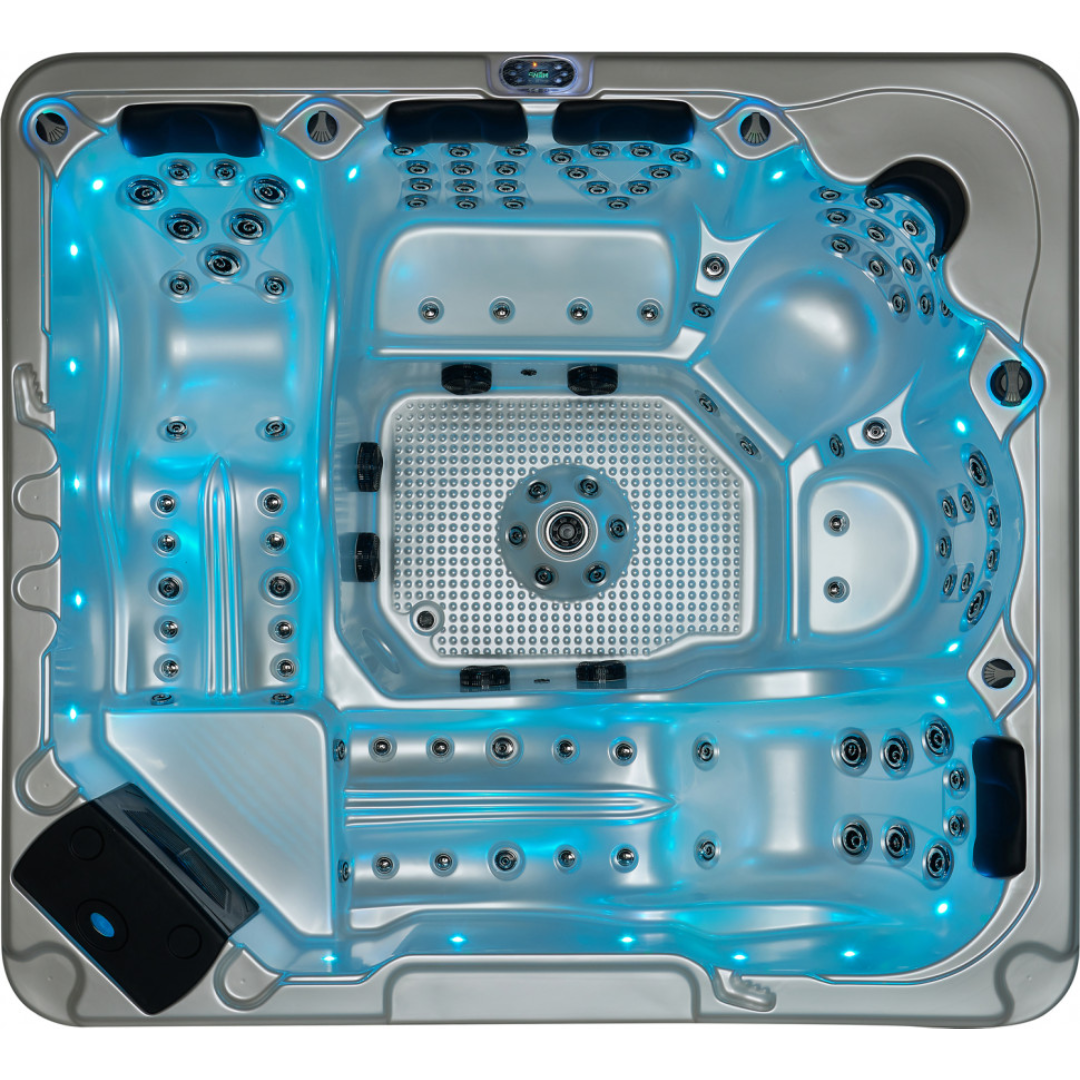 Бассейн оснащен бесшумным, мощным и надежным насосом. Чистую и безопасную воду обеспечивают озонатор и система картриджной фильтрации. Светодиодная подсветка позволяет использовать бассейн в темное время. Спа-центр можно установить как дома, так и на участке загородного дома.