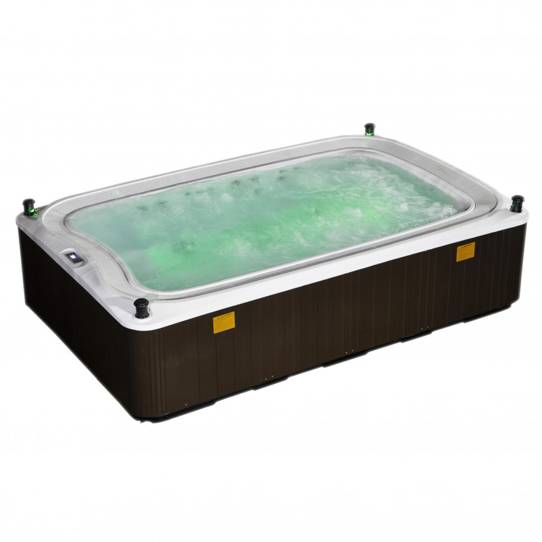 Бассейн оснащен мощными и бесшумными насосами. За чистоту воды отвечает картриджная система фильтрации и озонатор. Всеми функциями с легкостью можно управлять при помощи специальной панели. Яркая светодиодная подсветка позволяет использовать бассейн в темное время. Спа-центр можно установить как дома, так и на улице.