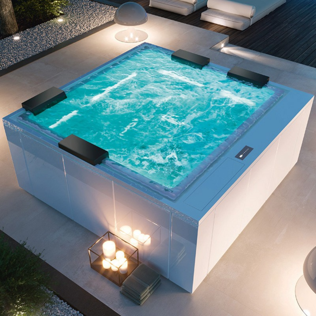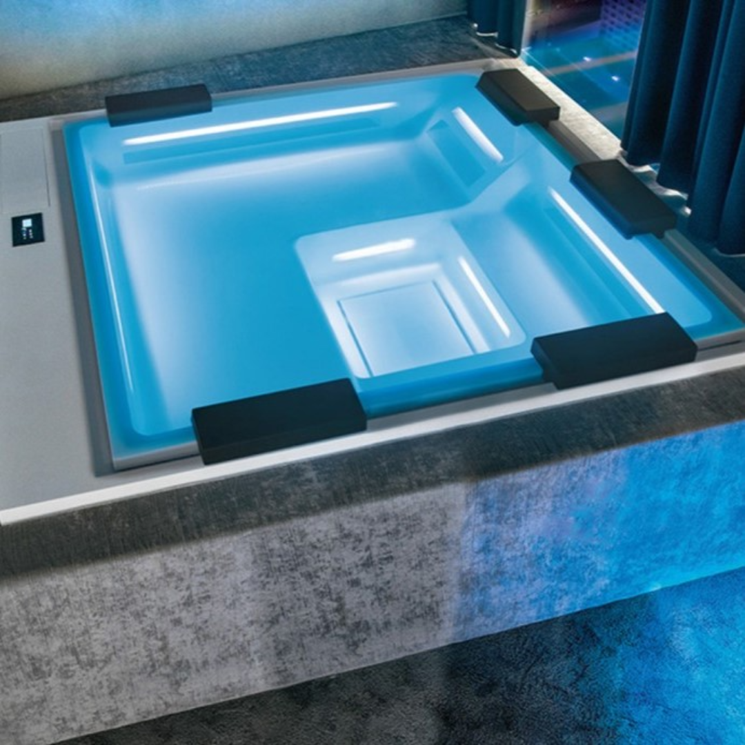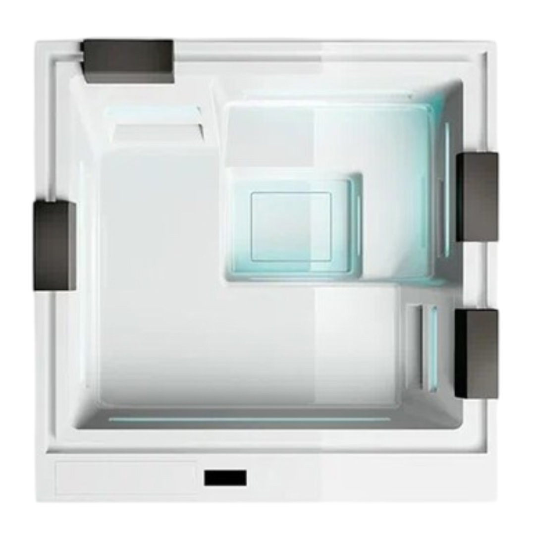Бассейн оснащен "Ghost System" - системой полностью скрытого гидромассажа. Характерной чертой которой является углубление по периметру чаши, в котором скрываются большое количество ориентируемых форсунок. Полностью встроенные технические узлы, в том числе сифонная система перелива, скрытая в углублении ванны. Благоприятное воздействие гидромассажа усилено системой аэрофорсунок.