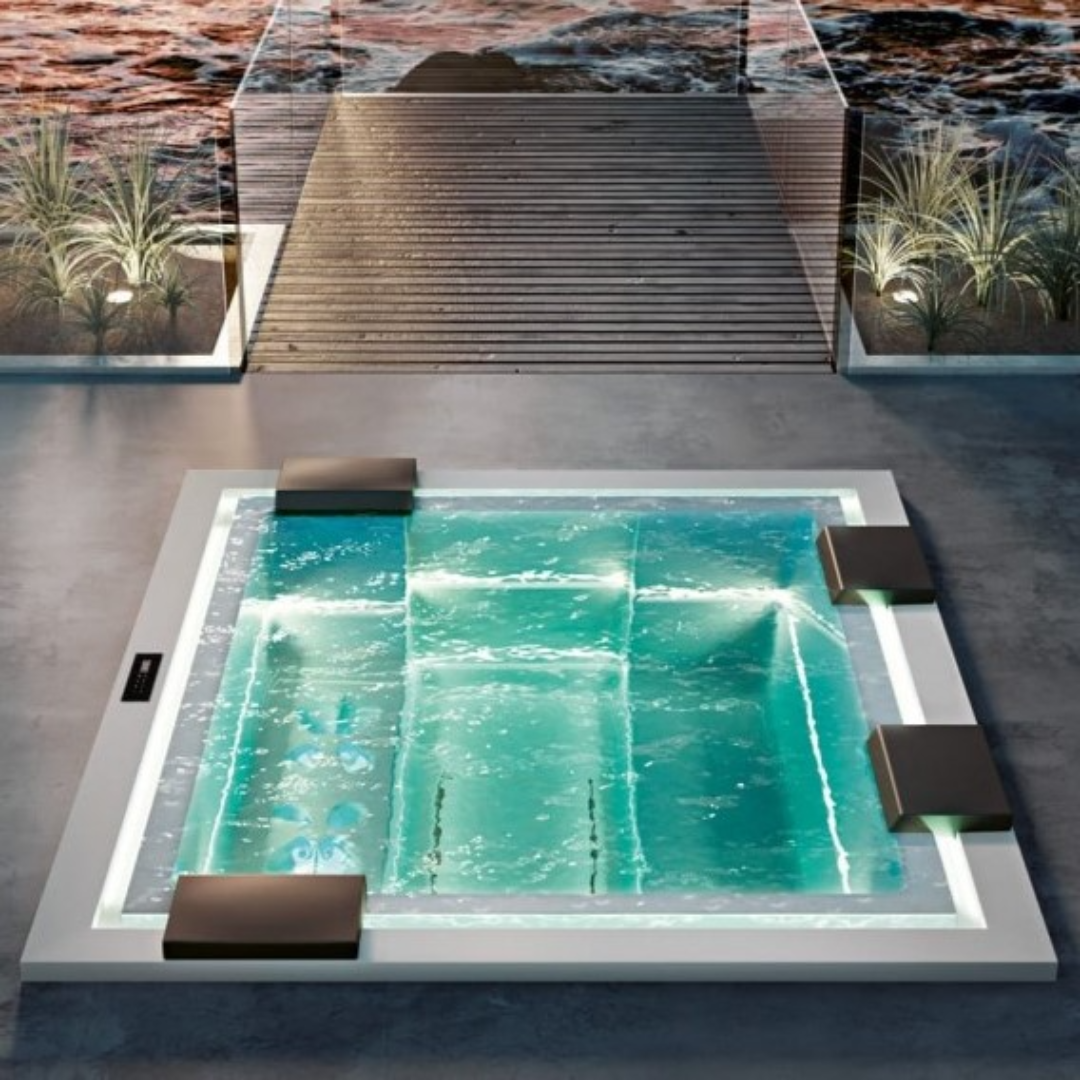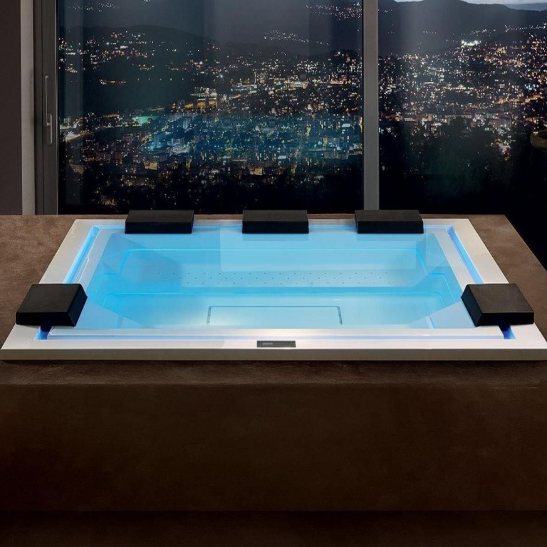 Бассейн оснащен "Ghost System" - системой полностью скрытого гидромассажа. Характерной чертой которой является углубление по периметру чаши, в котором скрываются большое количество ориентируемых форсунок. Полностью встроенные технические узлы, в том числе сифонная система перелива, скрытая в углублении ванны. Благоприятное воздействие гидромассажа усилено системой аэрофорсунок.